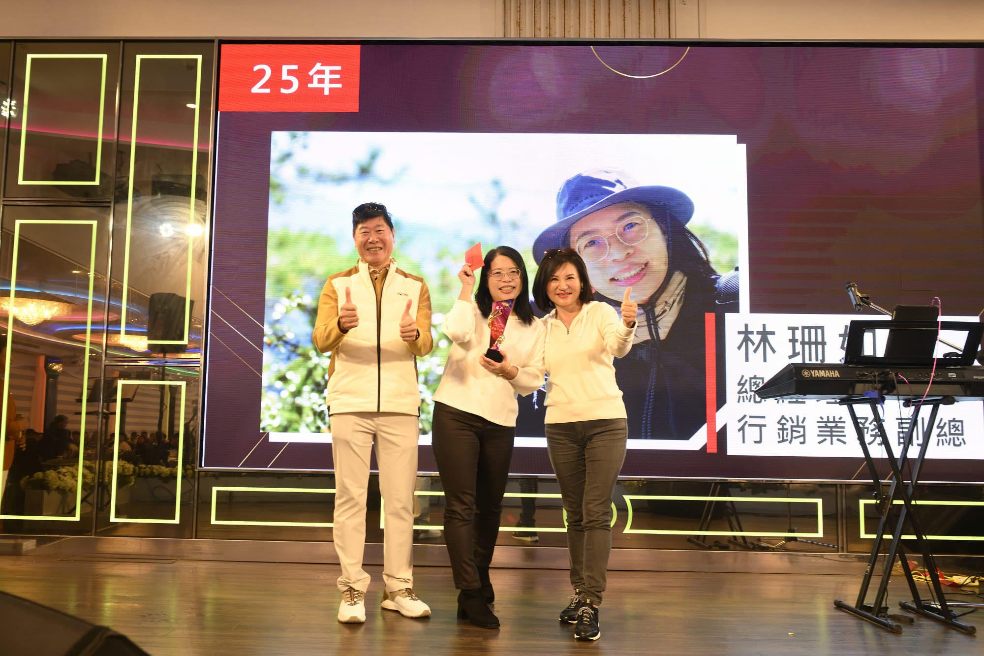 Кульминацией вечера стало награждение девяти сотрудников премией «За выдающиеся заслуги» за 10, 20 и 25 лет самоотверженной работы. Каждый из них получил памятный кубок и приз в знак признательности. Председатель Цай и заместитель председателя Линь выразили искреннюю благодарность, отметив, что в этот особенный день мы не только вспоминаем достижения и достижения прошлого года, но и отдаём дань уважения упорству и вкладу этих преданных своему делу сотрудников. Мы глубоко ценим и ценим каждое их усилие, большое или маленькое.
